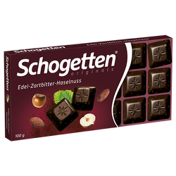 Schogetten Edel-Zartbitter-Haselnuss to doskonała propozycja dla miłośników czekolady. Ciesz się wyjątkowym połączeniem intensywnej ciemnej czekolady i chrupiących orzechów laskowych. Każda kostka to nie tylko słodka przyjemność, ale także chwila relaksu, która umili Twój dzień.