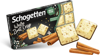 Odkryj wyjątkowy smak białej czekolady Schogetten Weiße Zimt Crisp, która zachwyca połączeniem delikatnej mlecznej czekolady oraz aromatycznych granulek cukru cynamonowego. W każdej kostce znajdziesz 10% granulek cynamonowych oraz 26% mlecznej czekolady, co sprawia, że każda chwila przyjemności jest niezapomniana.