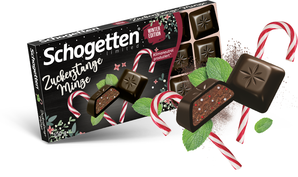 Składniki: Cukier, miazga kakaowa, tłuszcze roślinne (palmowy, kokosowy), słodka serwatka w proszku, pełne mleko w proszku, tłuszcz kakaowy, śmietanka w proszku, chude kakao (1,4%), tłuszcz maślany, emulgator (lecytyny z soi), syrop glukozowy, ekstrakt waniliowy, koncentrat soku z czarnego bzu, regulator kwasowości (kwas cytrynowy), olej słonecznikowy, naturalny aromat miętowy, substancja glazurująca (wosk carnauba).