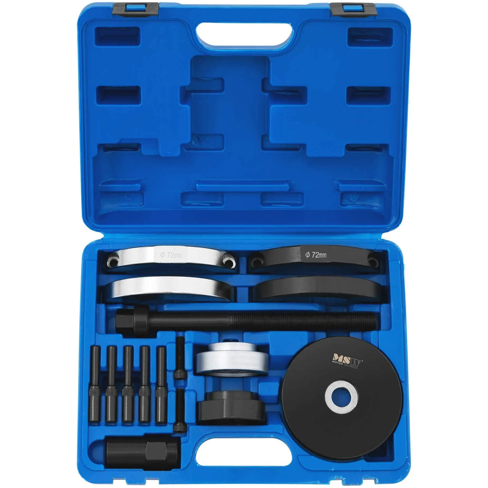 Ściągacz do łożysk piasty przedniej to niezbędne narzędzie dla każdego mechanika. Umożliwia bezpieczny montaż i demontaż łożysk w piastach przednich kół. Doskonale sprawdzi się zarówno w warsztatach mechanicznych, jak i serwisach samochodowych. Dzięki temu zestawowi praca stanie się łatwiejsza i bardziej efektywna.