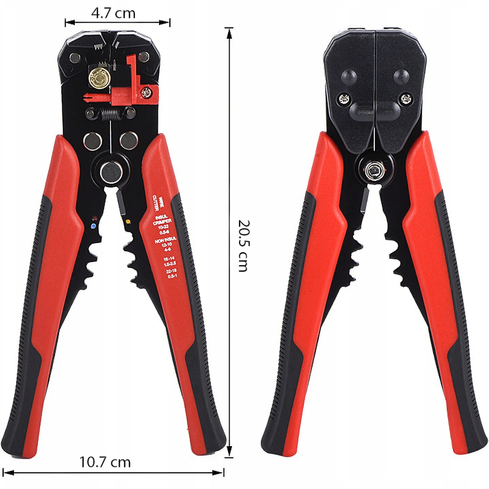 Ściągacz izolacji kabli przewodów szczypce zaciskarka 3w1 to wyjątkowe narzędzie, które każdy elektryk i hobbysta powinien mieć w swoim wyposażeniu. Dzięki innowacyjnemu designowi i wielofunkcyjności, urządzenie umożliwia szybkie, precyzyjne i bezpieczne wykonywanie trzech podstawowych operacji: ściągania izolacji, cięcia przewodów oraz zaciskania końcówek konektorowych.