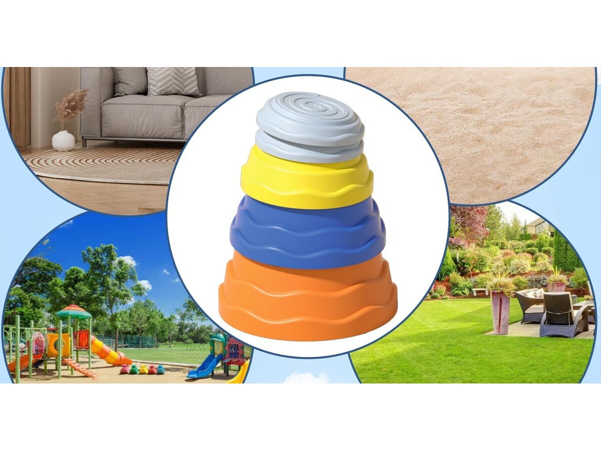 Kamienie można ułożyć jeden na drugim dzięki czemu dzieci rozwijają zdolność rozróżniania wielkości i układania w odpowiedniej kolejności. Poukładane kamienie zajmują też mniej miejsca.