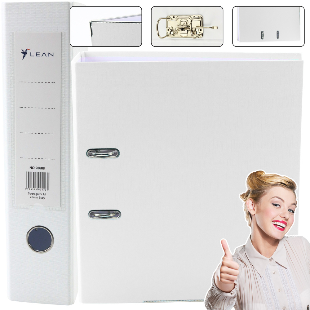 Segregator Na Dokumenty A4/75mm Mechanizm Dźwigniowy Biały