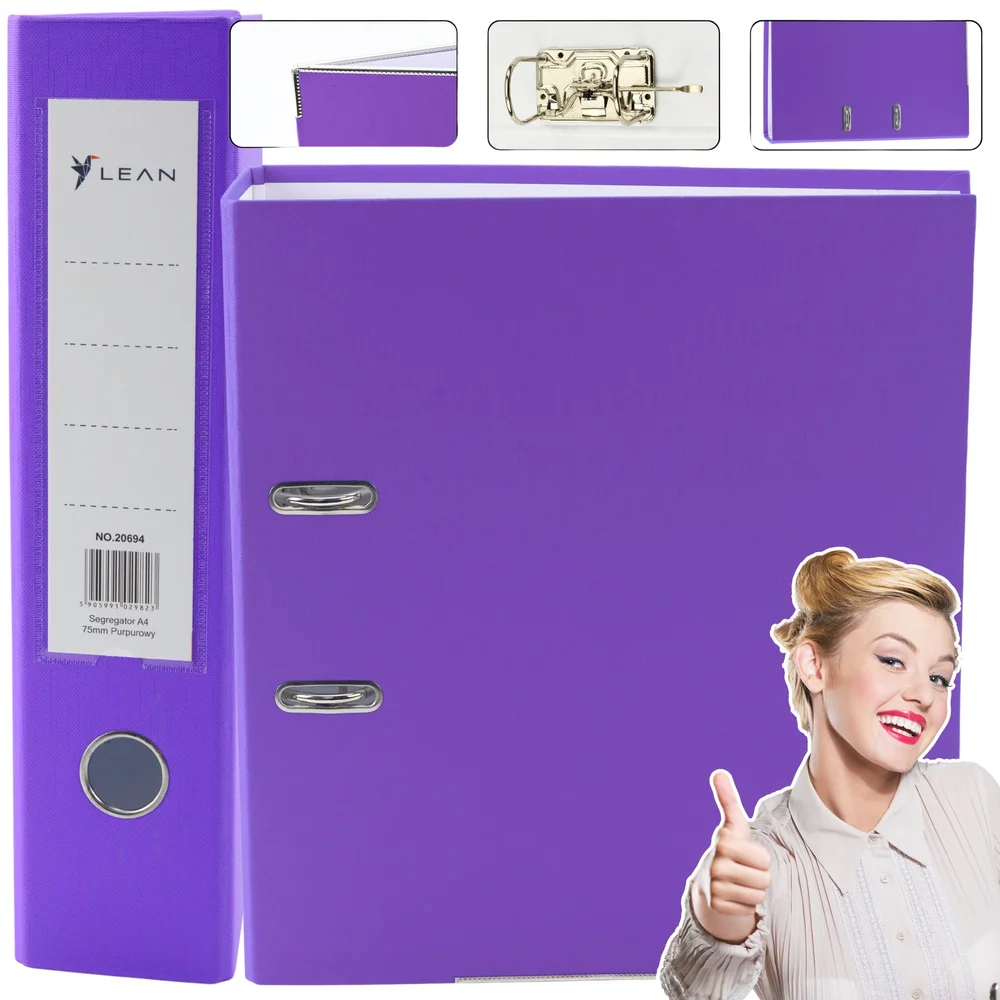 Segregator na dokumenty A4 z szerokim grzbietem 75 mm w eleganckim, intensywnie purpurowym kolorze. Idealny do przechowywania dokumentów w biurze, domu oraz do organizacji materiałów szkolnych. Ten pojemny segregator mieści do 500 kartek (o gramaturze 80g/m²), co czyni go świetnym rozwiązaniem do archiwizacji faktur, umów, raportów i innych istotnych dokumentów. Wysoka jakość wykonania sprawia, że segregator jest niezawodny i trwały.