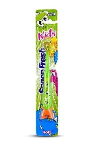 Szczoteczka Sence Fresh Kids Soft została stworzona z myślą o małych dzieciach. Jej wyjątkowo miękkie włosie delikatnie pielęgnuje zęby, zapewniając komfort podczas mycia, a jednocześnie chroni wrażliwe dziąsła.