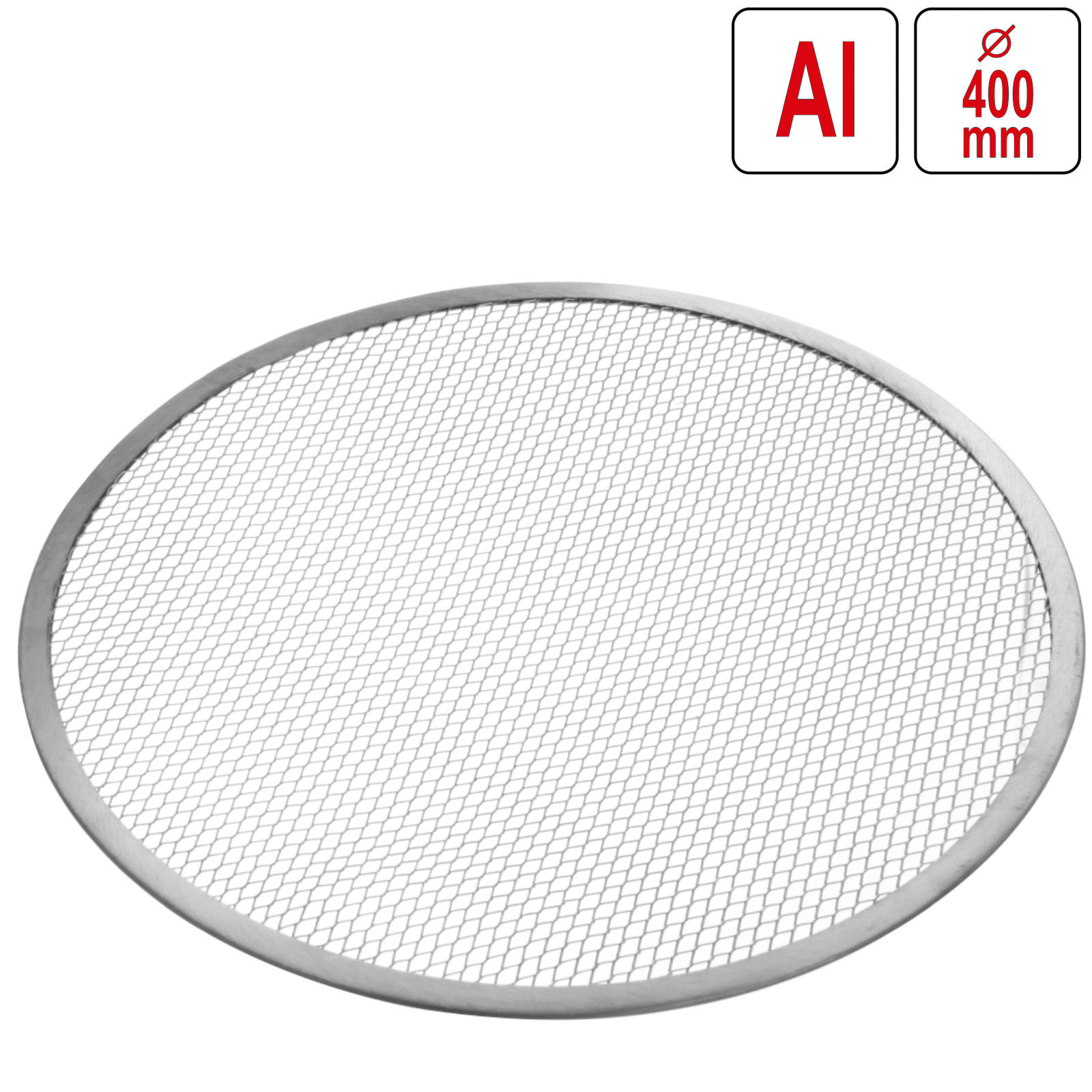 Siatka do pizzy o średnicy 400 mm, wykonana z solidnego aluminium, zapewnia równomierny wypiek pizzy. Jej trwała konstrukcja sprawia, że jest niezawodna zarówno w restauracjach, jak i w domowych warunkach. Warto pamiętać, że siatka nie nadaje się do mycia w zmywarkach.