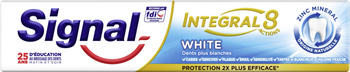 Signal Integral 8 White Pasta do Zębów to innowacyjna pasta o pojemności 75 ml, która oferuje 8 skutecznych działań, zapewniających długotrwałą ochronę oraz bielsze zęby. Dzięki zaawansowanej formule z antybakteryjnym cynkiem, efekt ochrony przed płytką nazębną utrzymuje się do 18 godzin. Dodatkowo, perlit wzmacnia działanie wybielające.