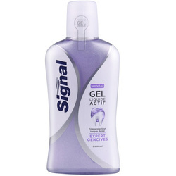 Signal Liquid Activf Gel Expert Gencives Płyn do Płukania Jamy Ustnej 500 ml to produkt, który wspiera zdrowie dziąseł. Unikalna formuła żelu otula zęby, tworząc długotrwały film ochronny. Dzięki temu płyn długo pozostaje w ustach, co sprzyja efektywnej ochronie. Jest to płyn do płukania jamy ustnej bez alkoholu, co czyni go łagodnym dla błon śluzowych. Produkt dociera do przestrzeni międzyzębowych oraz trudno dostępnych miejsc, zapewniając kompleksową higienę jamy ustnej.