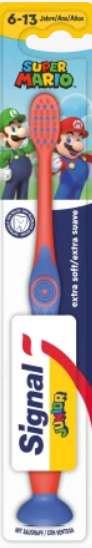 Signal Super Mario Junior to szczoteczka do zębów stworzona z myślą o dzieciach w wieku od 6 do 13 lat, zapewniająca skuteczną i bezpieczną higienę jamy ustnej. Dzięki delikatnemu włosiu i zaokrąglonej główce, skutecznie usuwa osady i zanieczyszczenia, jednocześnie chroniąc dziąsła przed podrażnieniami.