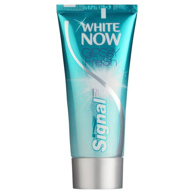 Odkryj wyjątkową pastę do zębów Signal White Now Glossy Fresh w stylowym srebrnoniebieskim opakowaniu. Dzięki innowacyjnej technologii Blue Light, Twoje zęby będą optycznie bielsze i bardziej lśniące już po pierwszym użyciu. Pasta jest delikatna, ale skuteczna, co sprawia, że idealnie nadaje się dla kobiet pragnących rozjaśnić swój uśmiech.