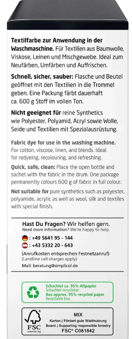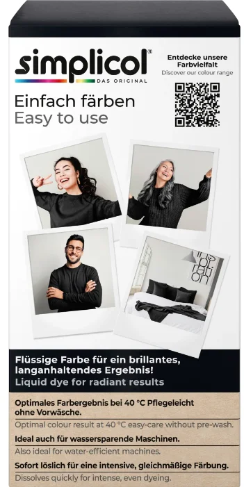 Użycie Simplicol Aksamitna Czerń to prosty sposób na nadanie Twoim ulubionym ubraniom nowego życia i eleganckiego wyglądu. Odśwież swoją garderobę już teraz!