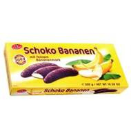 Skład: Cukier, syrop glukozowy, woda, miazga kakaowa, pulpa bananowa 6%, masło kakaowe, substancja utrzymująca wilgoć E420, środek żelujący E406, żelatyna, zakwaszacz E330, emulgator E322 (soja), naturalny aromat, barwnik E100.