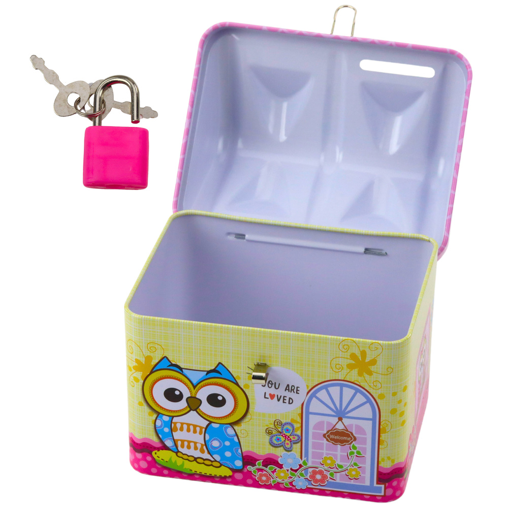SKARBONKA METALOWA DOMEK SOWA Z KŁÓDKĄ