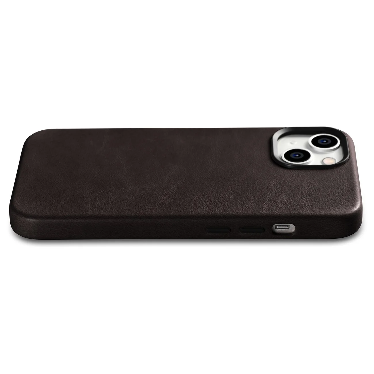 W zestawie znajduje się skórzane etui iPhone 14 Plus magnetyczne z MagSafe w kolorze ciemnego brązu.