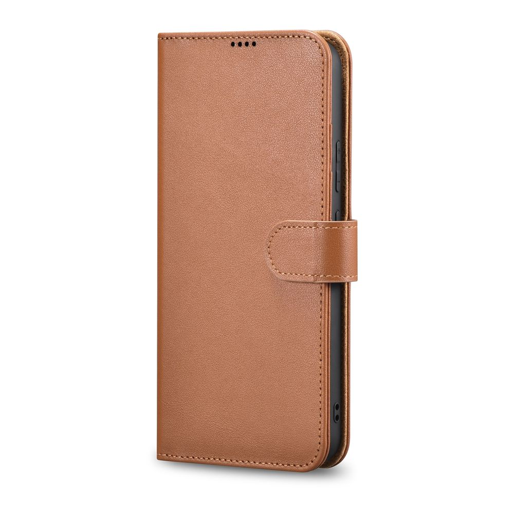 Pokrowiec iCarer Leather Wallet Case to praktyczne rozwiązanie dla posiadaczy Samsunga Galaxy S22+. Zapewnia ochronę przed uszkodzeniami, umożliwia przechowywanie kart i banknotów oraz może pełnić rolę podstawki do wygodnego oglądania filmów.
