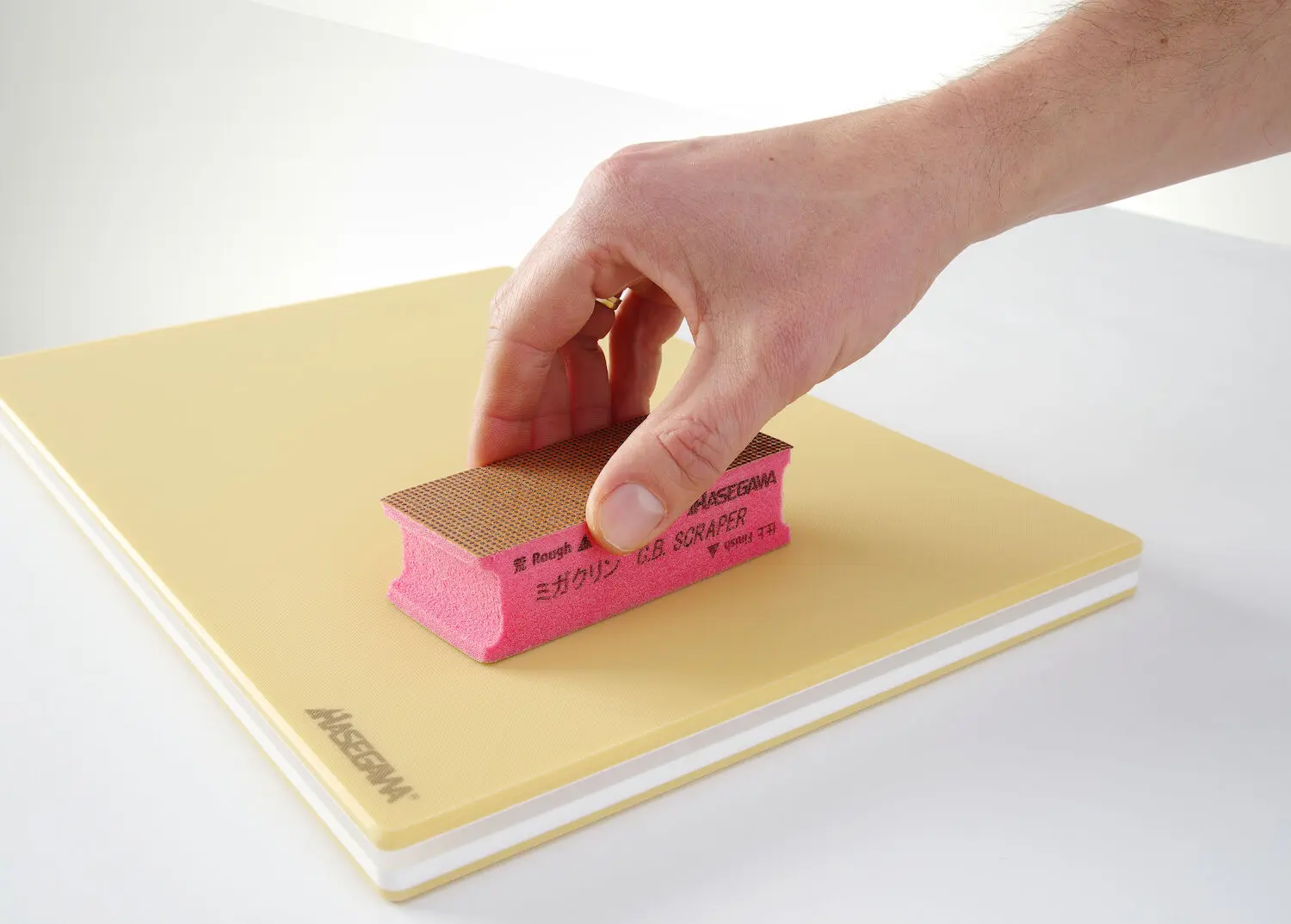 Uwaga: Przed użyciem skrobaka, powierzchnia deski powinna być zwilżona.