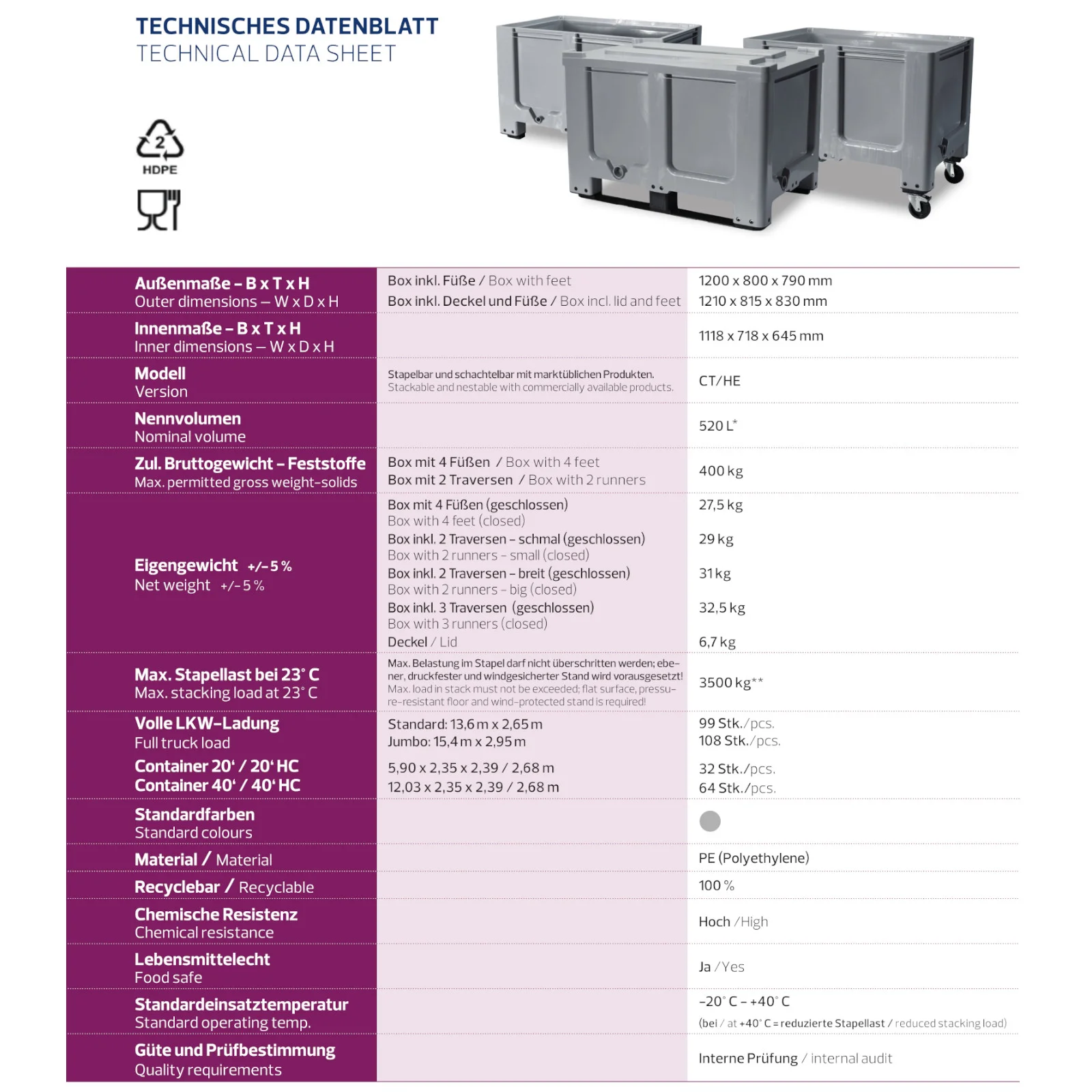 Nasza skrzyniopaleta to produkt austriackiego producenta EUROPLAST, który spełnia standardy palet EUR. Doskonale nadaje się do transportu i przechowywania różnorodnych towarów w systemach logistycznych oraz magazynowych.