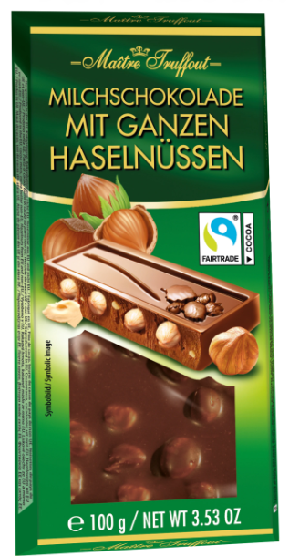 Maitre Truffout Mleczna Czekolada z Całymi Orzechami Laskowymi 100 g