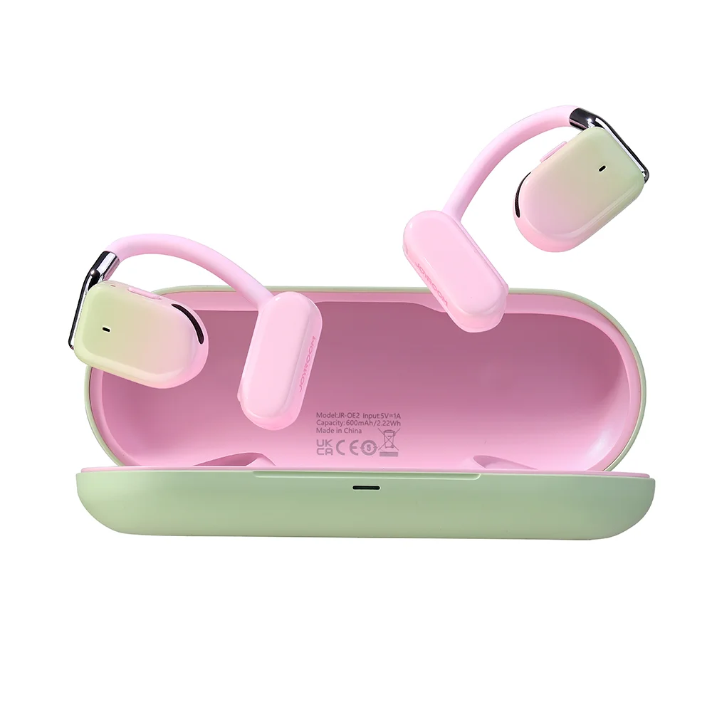 Ciesz się muzyką bez ograniczeń dzięki słuchawkom TWS Joyroom Openfree JR-OE2. Te różowe słuchawki oferują komfort noszenia i wysoką jakość dźwięku. Ergonomiczna konstrukcja sprawia, że zapomnisz, że masz je na uszach.