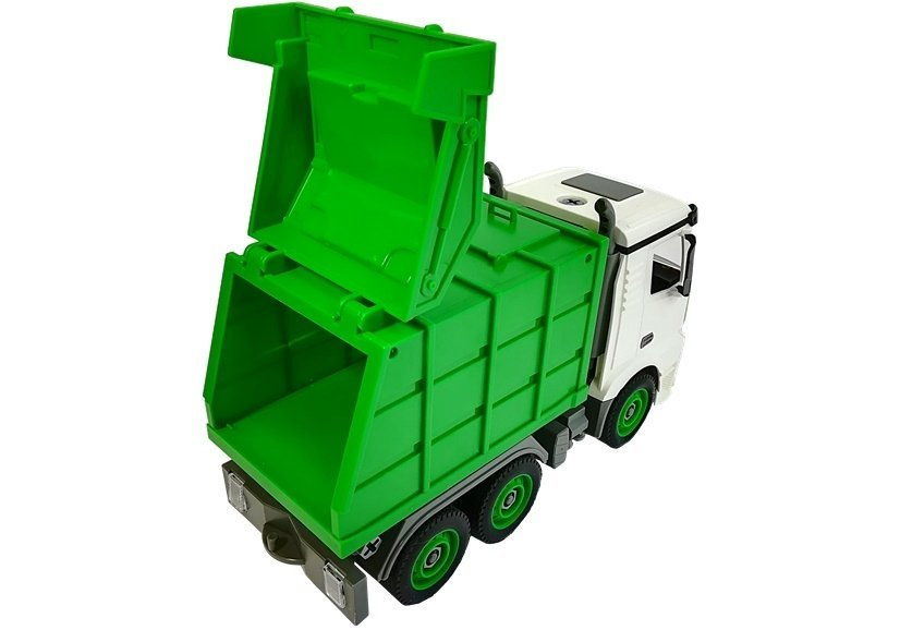 Samochód wyposażony jest w zbiornik z ruchomą klapą, który można spokojnie podnosić. Dzięki możliwości poruszania naczepą Twoje dziecko może napełnić ją mniejszymi zabawkami, a następnie wysypać je w innym miejscu. Zestaw złożony jest z 48 elementów.