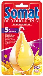 Odświeżacz do zmywarek Somat Deo Duo-Perls o zapachu cytryny i pomarańczy skutecznie odświeża wnętrze zmywarki. Dzięki innowacyjnej technologii Deo Duo-Perls, przyjemny zapach uwalnia się za każdym razem, gdy otwierasz zmywarkę. Produkt eliminuje nieprzyjemne zapachy, które mogą osiadać na naczyniach, zapewniając świeżość. Filtr ochronny uwalnia aromat tylko po zakończeniu cyklu mycia, co dodatkowo podnosi komfort użytkowania. Odświeżacz ma wydajność aż do 60 myć, co czyni go praktycznym wyborem. Jest łatwy w montażu i stabilny, nie spada podczas mycia. Wnętrze Twojej zmywarki będzie pachnieć cytrusami, co z pewnością umili codzienne korzystanie z urządzenia.