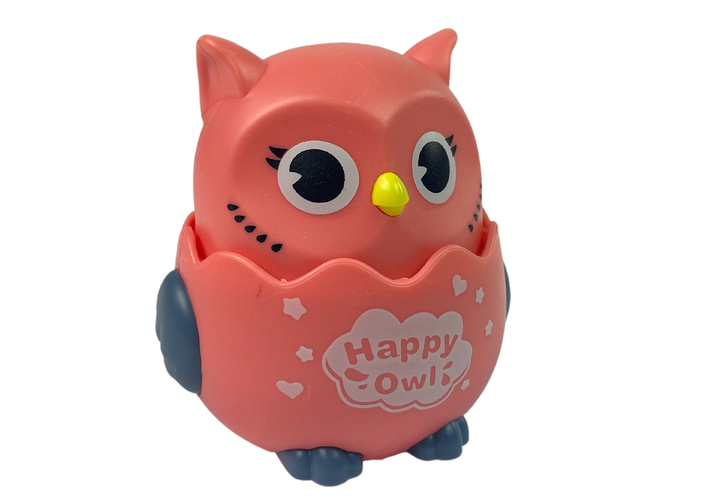 Figurka przedstawia uroczą różową sowę z niebieskimi skrzydłami. Dociśnij sówkę do podłoża, puść i podziwiaj jak mknie w przód. Bez problemu porusza się po płaskich powierzchniach, zatrzymuje się na przeszkodach. Dziecko chcąc dogonić sówkę, chętniej będzie się poruszać i stawiać pierwsze kroki.