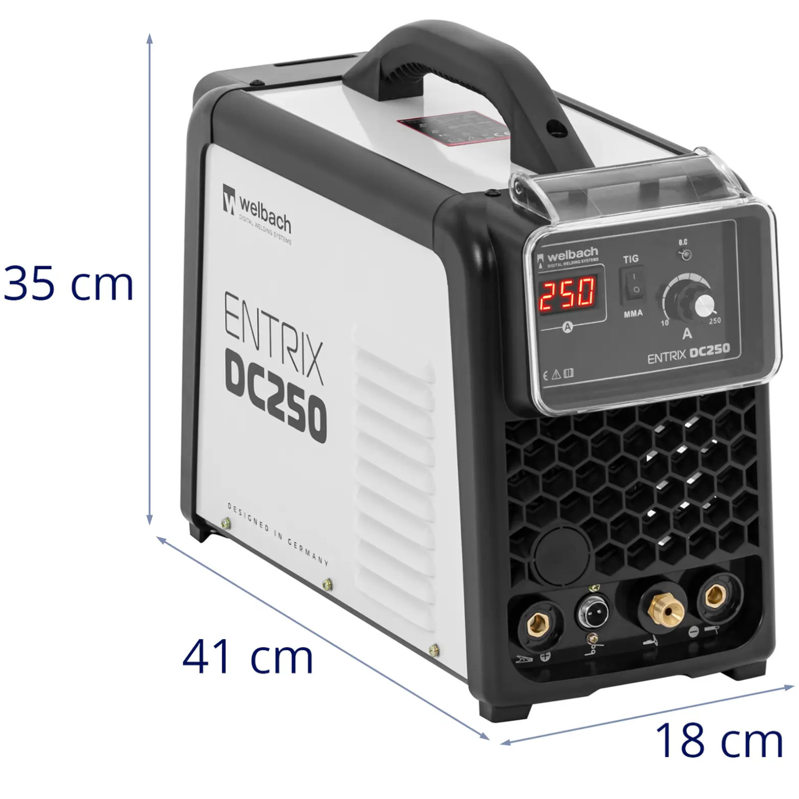 Spawarka ENTRIX DC250 to urządzenie, które łączy wydajność z łatwością użycia. Dzięki nowoczesnej technologii inwertorowej IGBT, maszyna obsługuje metody spawania TIG DC oraz MMA, co zapewnia wszechstronność w różnych zastosowaniach. Przy zajarzaniu łuku kontaktowego nie występują zakłócenia spowodowane emisjami elektromagnetycznymi, co zwiększa komfort pracy.