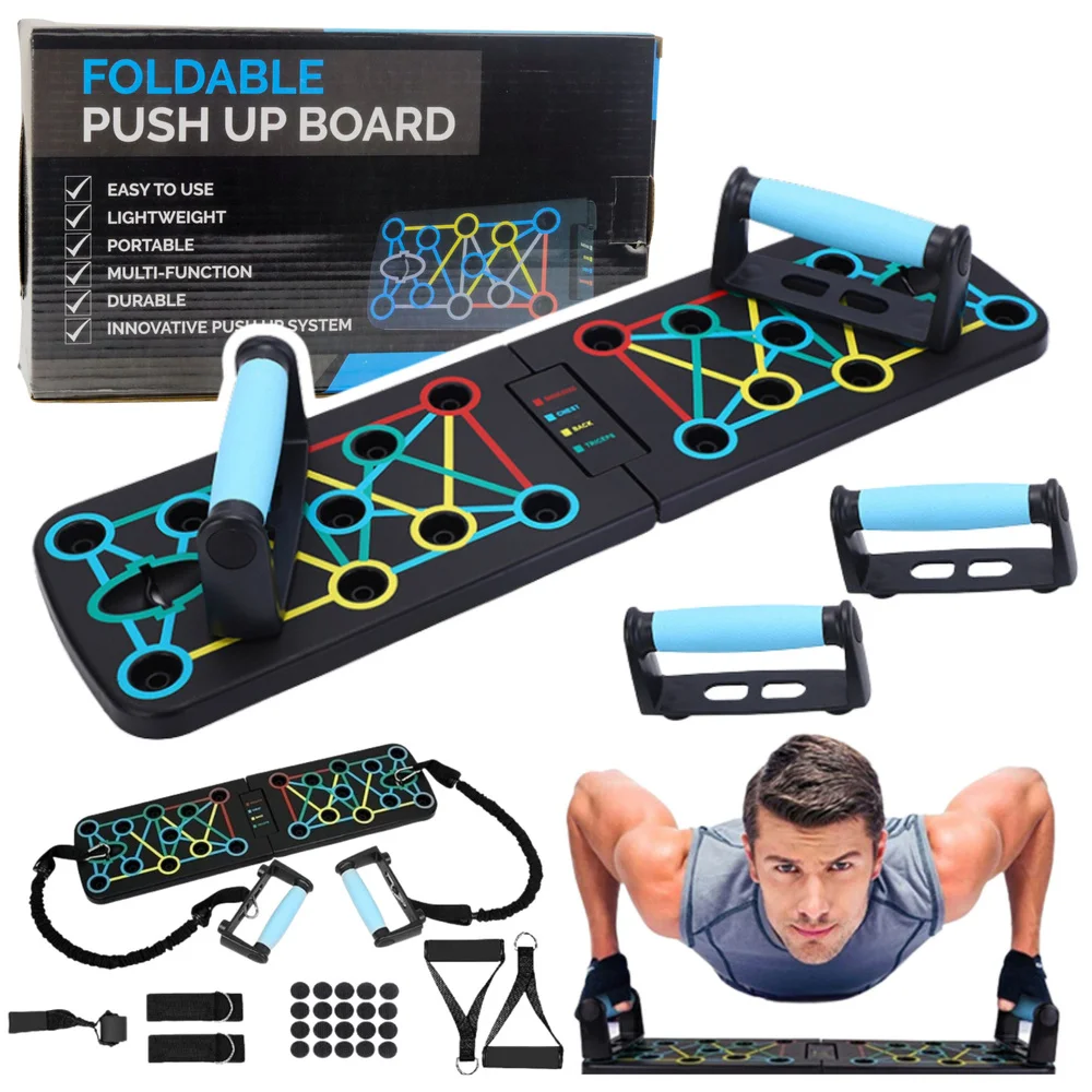 Deska Do Pompek Ćwiczeń 15w1 Składana Gumy Oporowe Z Uchwytami
