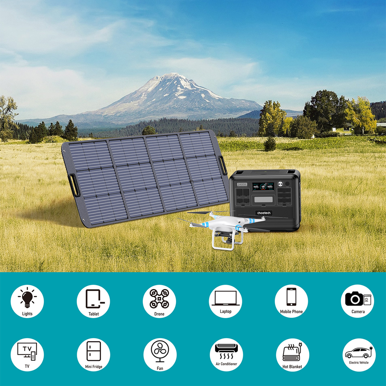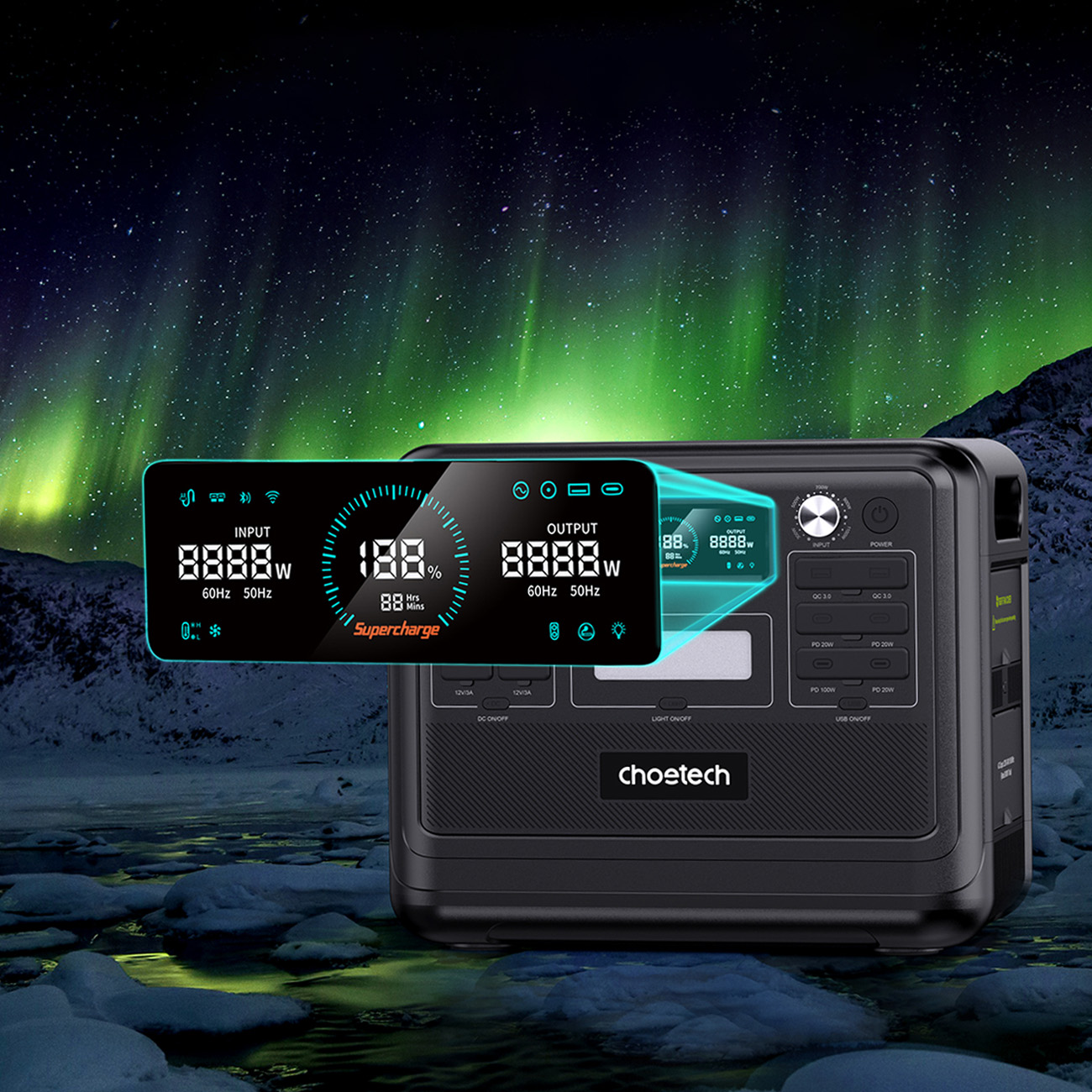 Stacja zasilania Choetech BS008 to wszechstronne źródło energii, które sprosta wymaganiom nawet najbardziej wymagających użytkowników. Dzięki mocy wyjściowej do 2400 W, zasilisz różnorodne urządzenia, od laptopów po samochody elektryczne.
