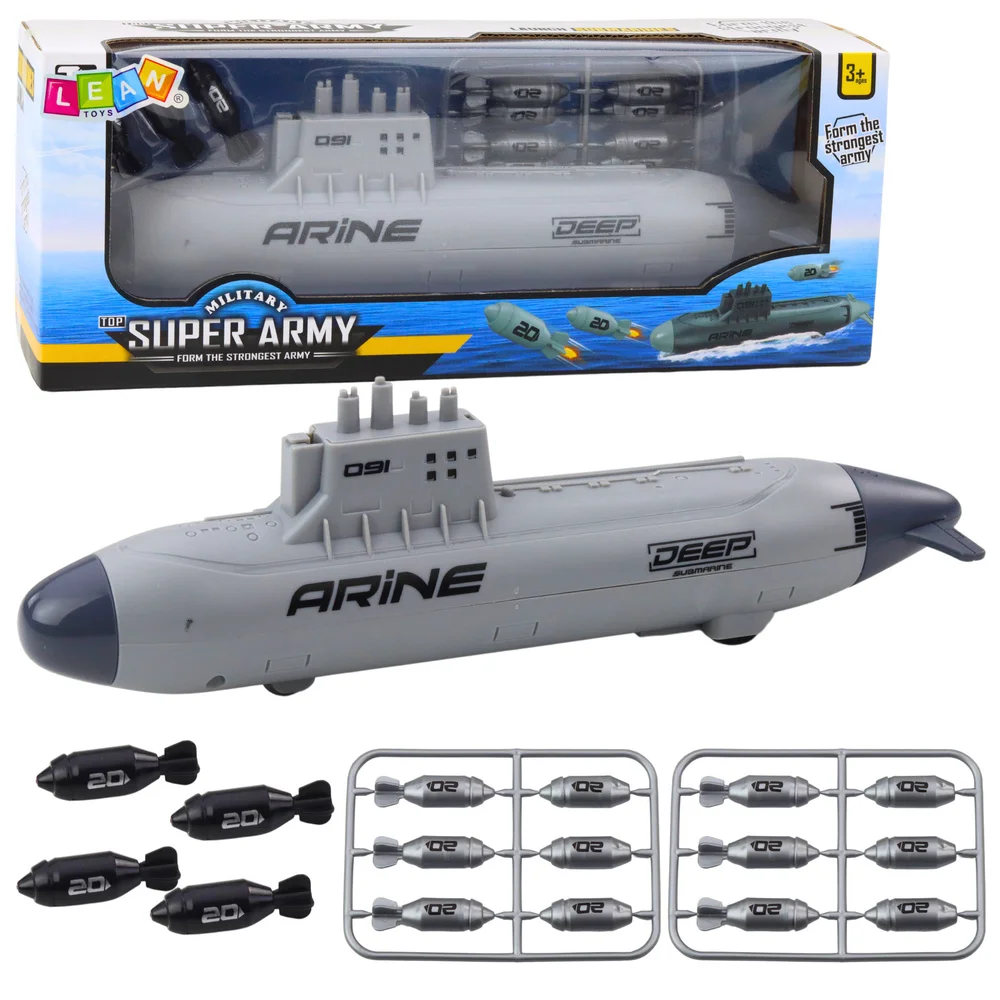 Realistyczna łódź podwodna o długości 28 cm to doskonała zabawka dla małych fanów militariów i morskich przygód. Dzięki napędowi typu friction (mechaniczne naciąganie), łódź może poruszać się po powierzchni, a funkcja wystrzeliwania torped dodaje emocji i uatrakcyjnia każdą zabawę.