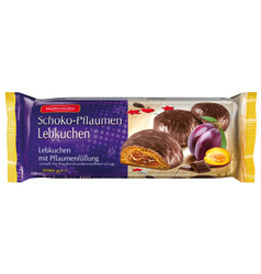 Składniki: mąka PSZENNA, nadzienie śliwkowe 24% (syrop glukozowo-fruktozowy, śliwki 35%, cukier, skrobia modyfikowana, pektyny, kwas cytrynowy, aromat), syrop glukozowo-fruktozowy, czekolada 18% (cukier, masa kakaowa, masło kakaowe, tłuszcz mleczny, lecytyny słonecznikowe), woda, syrop cukrowy karmelowy, węglan amonu, węglan sodu, przyprawy (w tym cynamon), sól.