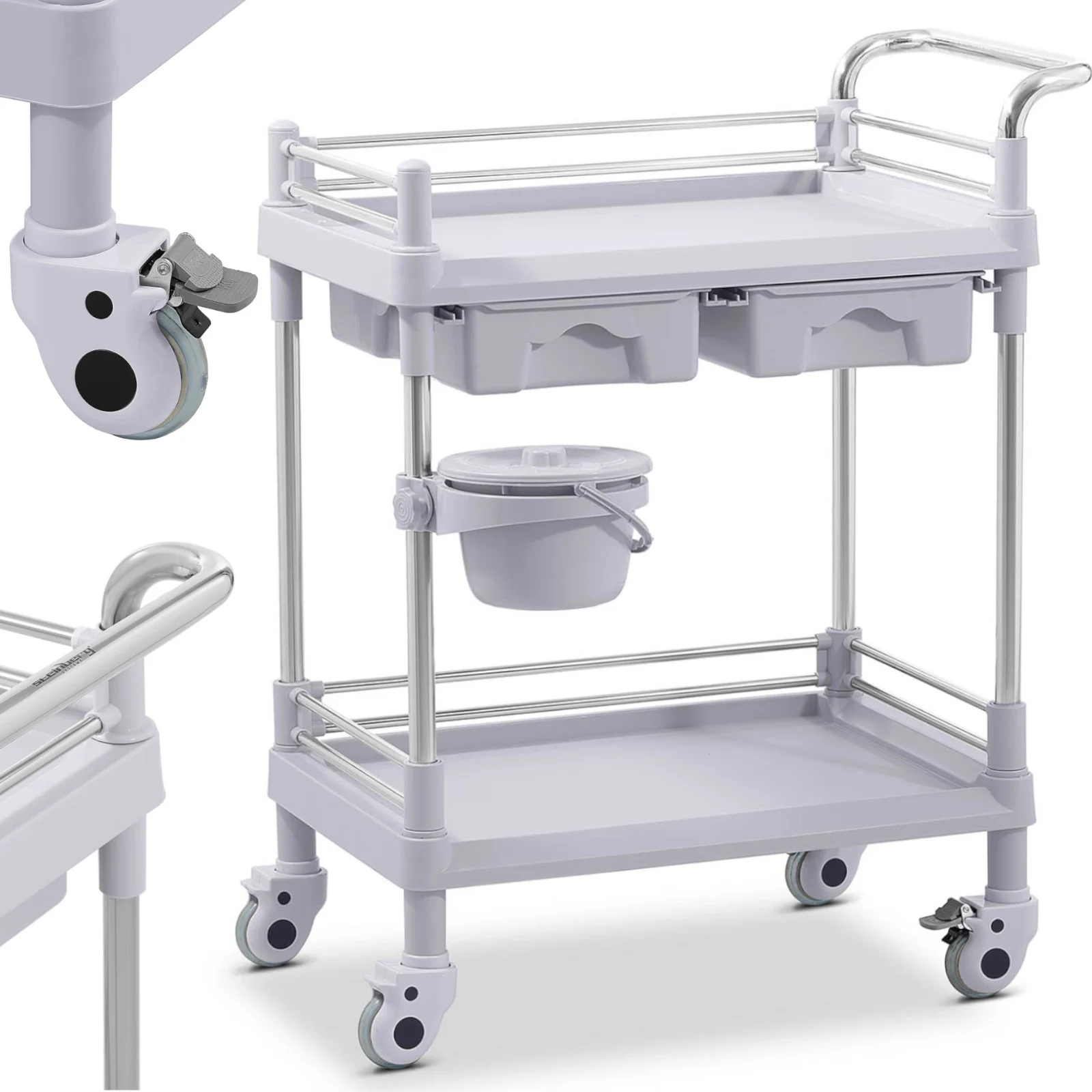 Wózek laboratoryjny zabiegowy kosmetyczny ze stali 2 szuflady 2 półki 85 x 54 x 28 cm