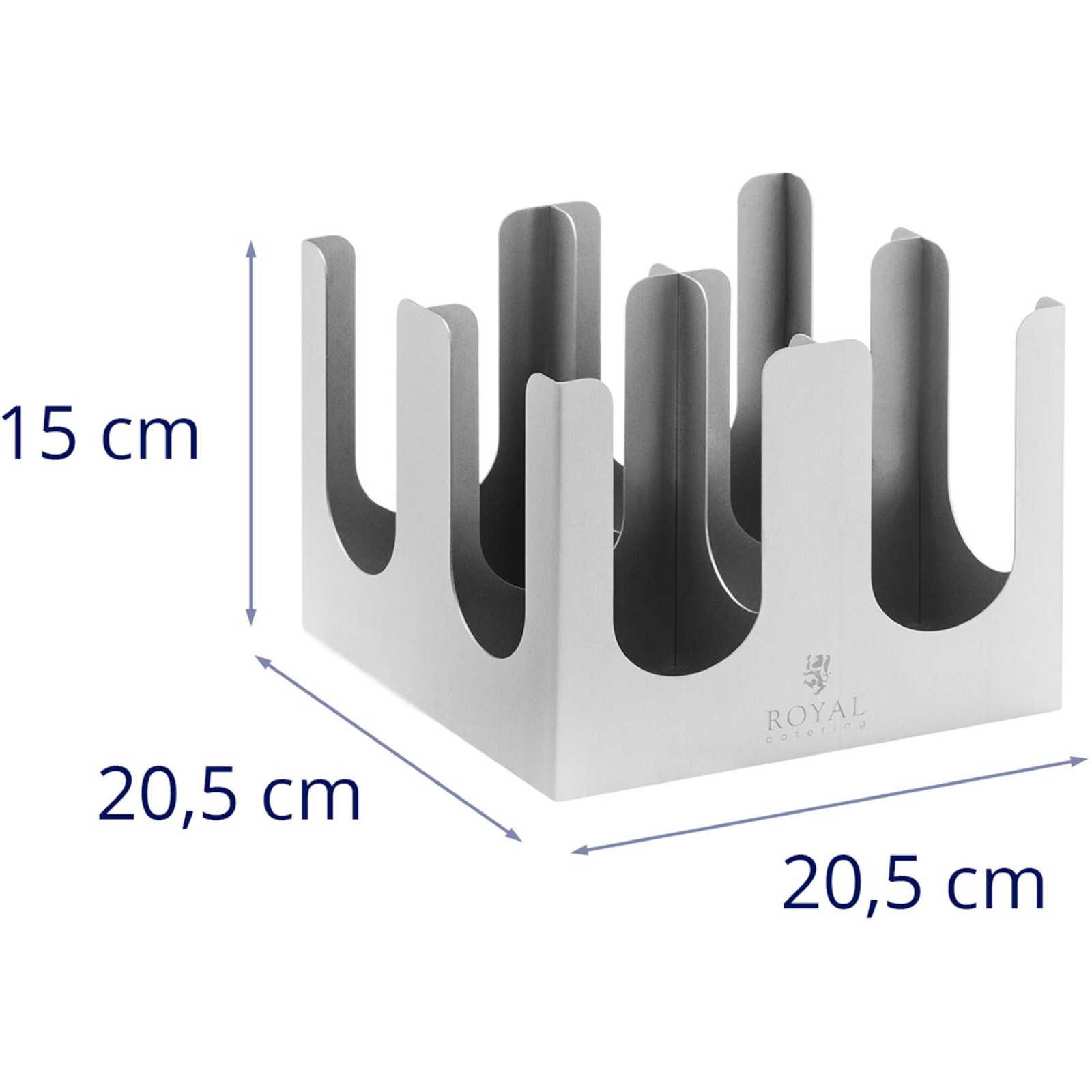 Ten praktyczny stojak na kubki i pokrywki marki Royal Catering to idealne rozwiązanie dla punktów serwujących napoje na wynos. Dzięki 4 przegródkom, z łatwością pomieścisz wiele papierowych kubków oraz ich pokrywki, co zapewnia porządek i wygodny dostęp do akcesoriów. Otwartą konstrukcję można umieścić na każdym blacie, co czyni go doskonałym wyborem do biur, sal konferencyjnych czy stoisk z przekąskami.