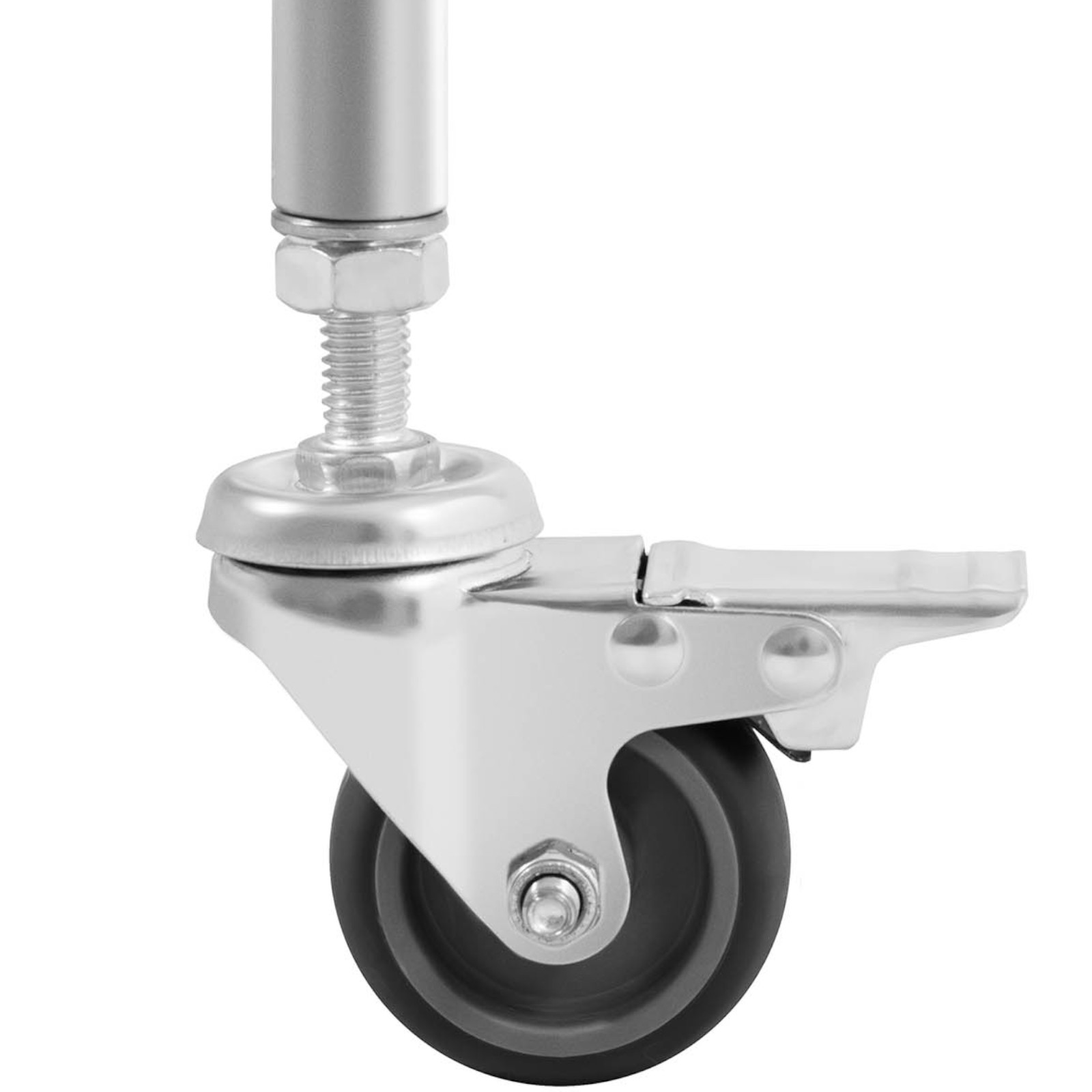 Wykonany z wysokiej jakości stali nierdzewnej oraz tworzywa sztucznego, zapewnia trwałość i solidność. Mobilność stojaka ułatwiają zwrotne kółka z hamulcami, które sprawdzają się nawet w wąskich korytarzach.
