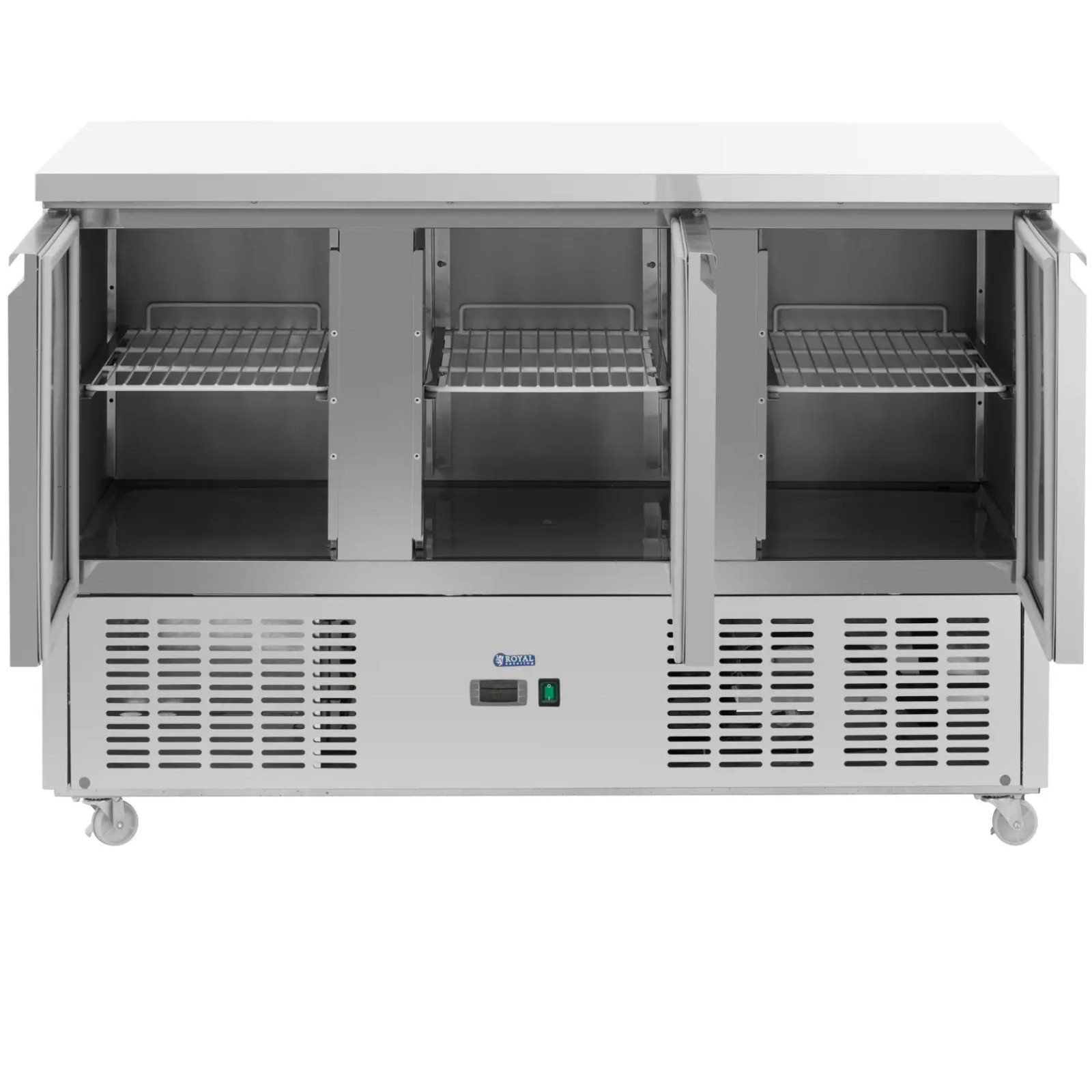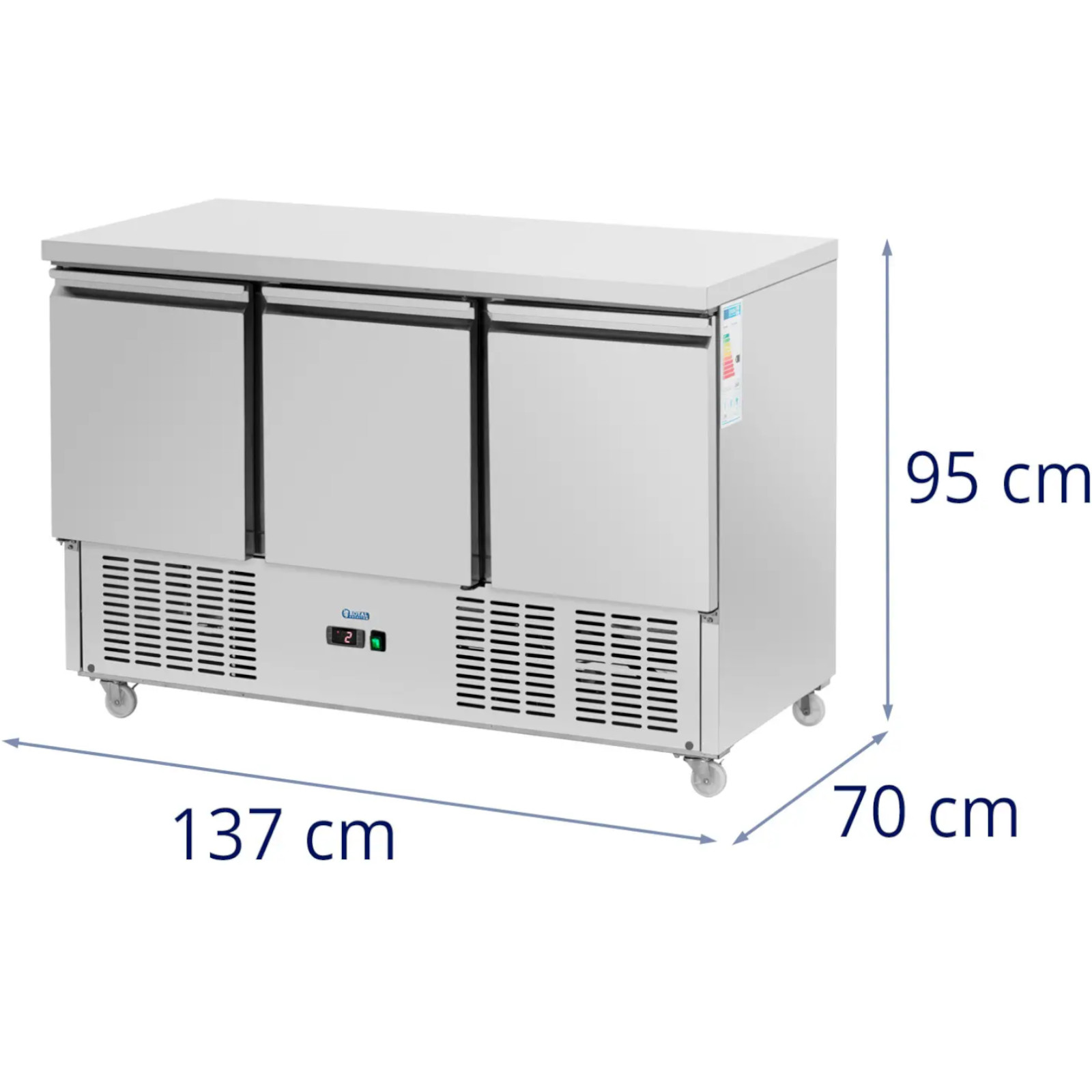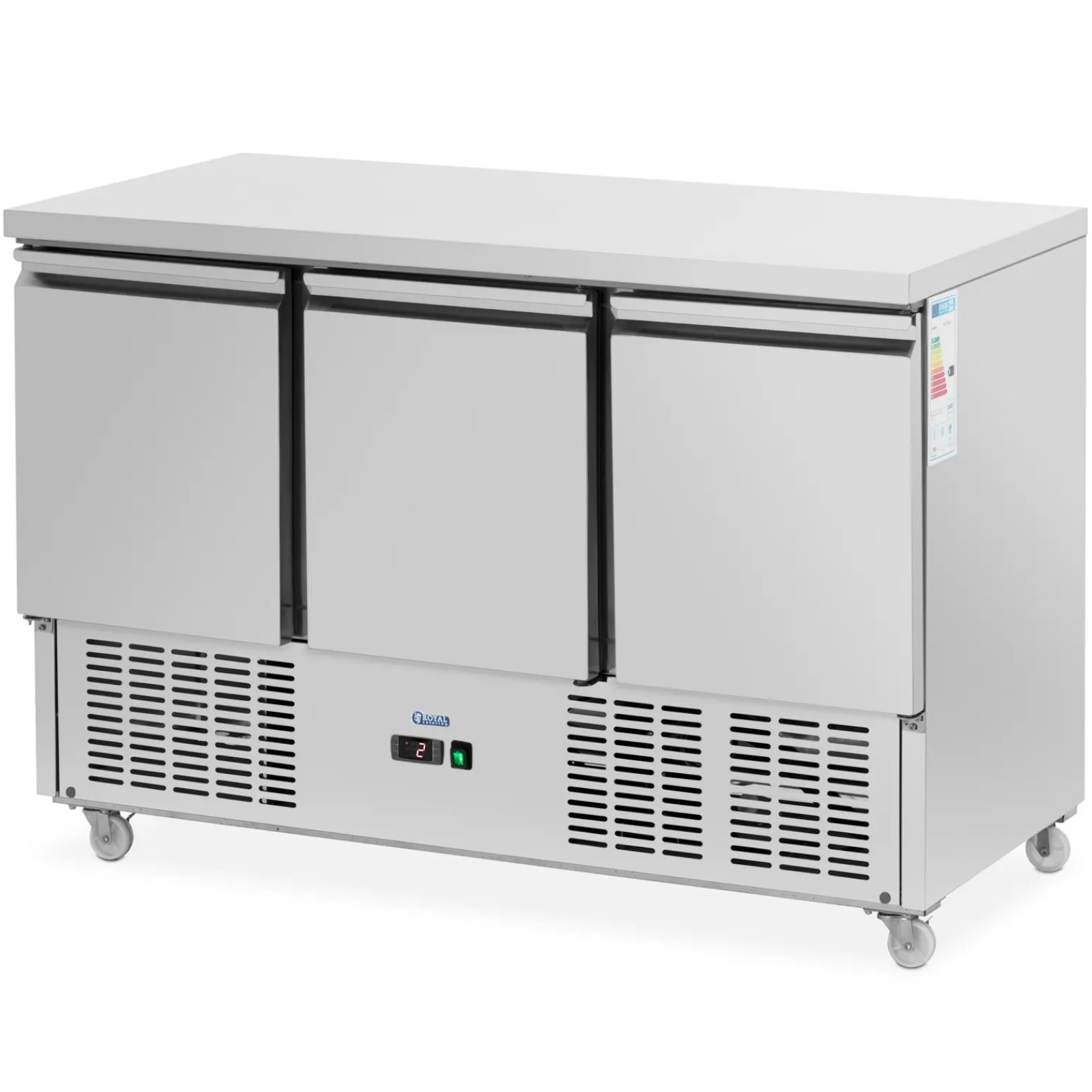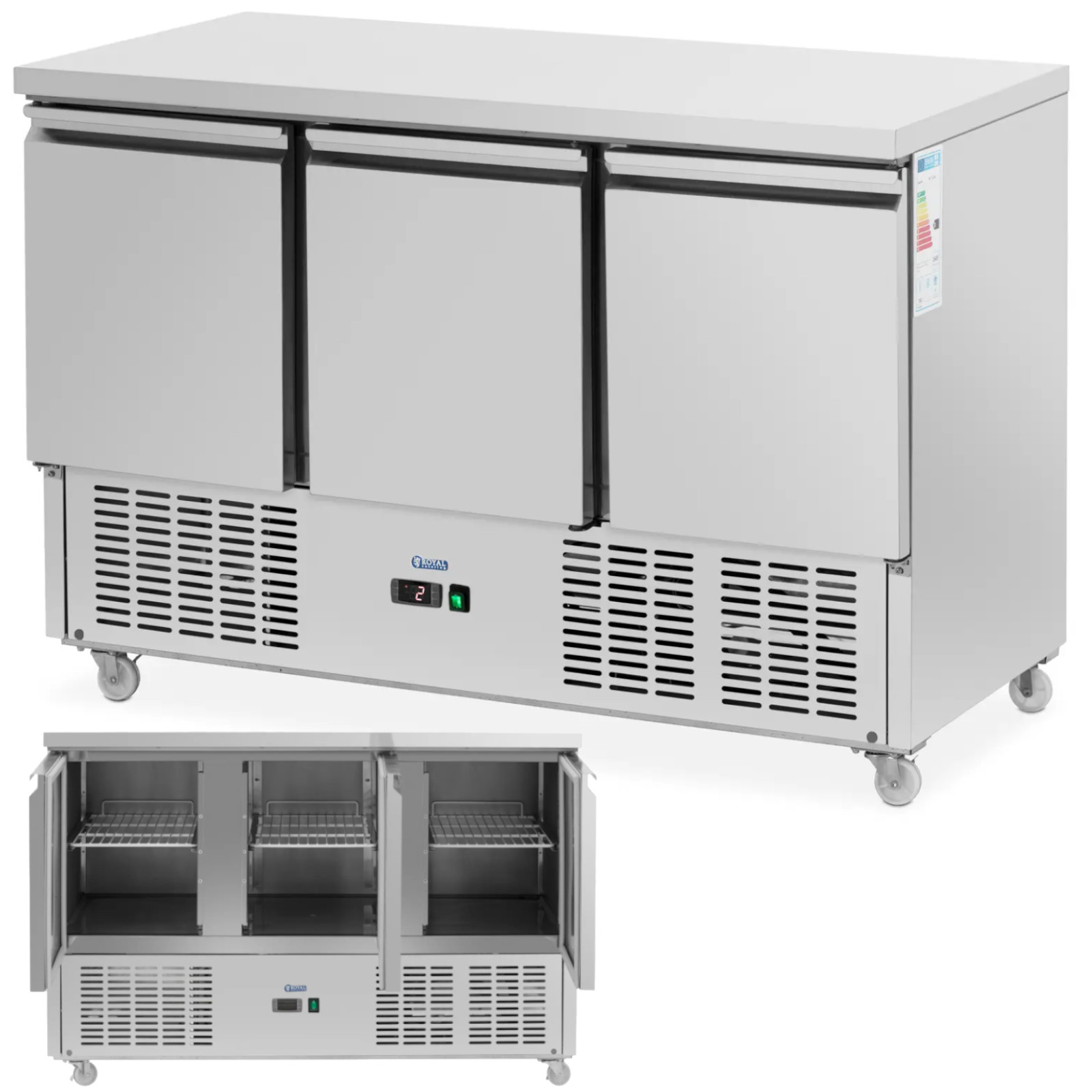 Stół chłodniczy marki Royal Catering to idealne rozwiązanie dla restauracji, hoteli, barów sałatkowych oraz lokali serwujących kebaby i falafele. Dzięki dużej pojemności 360 litrów oraz trzem przestronnym komorom, zapewnia wystarczająco dużo miejsca na świeże składniki, co ułatwia przygotowanie potraw.