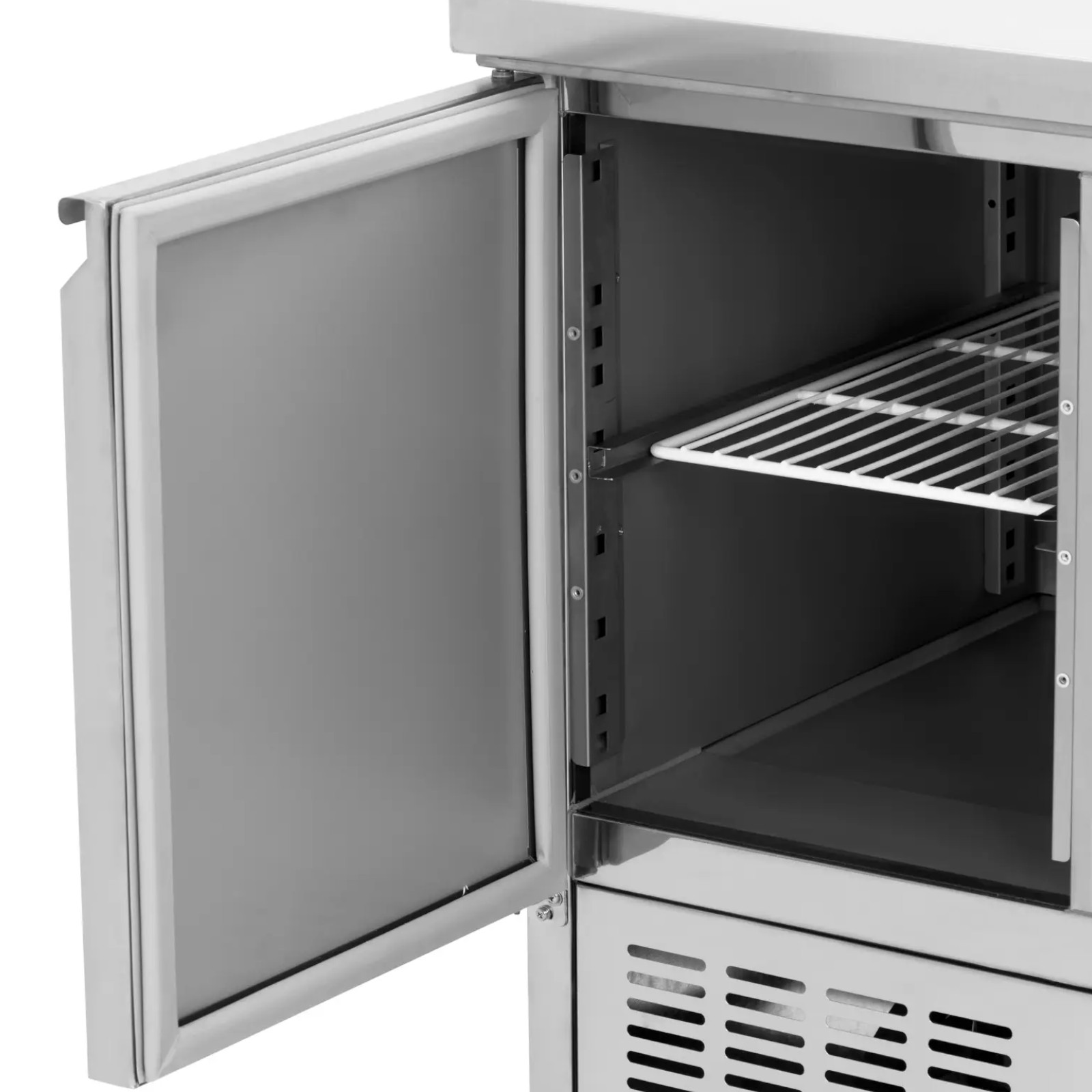 Funkcja automatycznego odmrażania zmniejsza zużycie energii i skraca czas pracy. Duży blat ze stali nierdzewnej jest nie tylko łatwy w czyszczeniu, ale także odporny na korozję i nie reaguje z żywnością, co zapewnia bezpieczeństwo. Stół chłodniczy to niezawodne urządzenie, które zwiększy efektywność pracy w każdej kuchni.