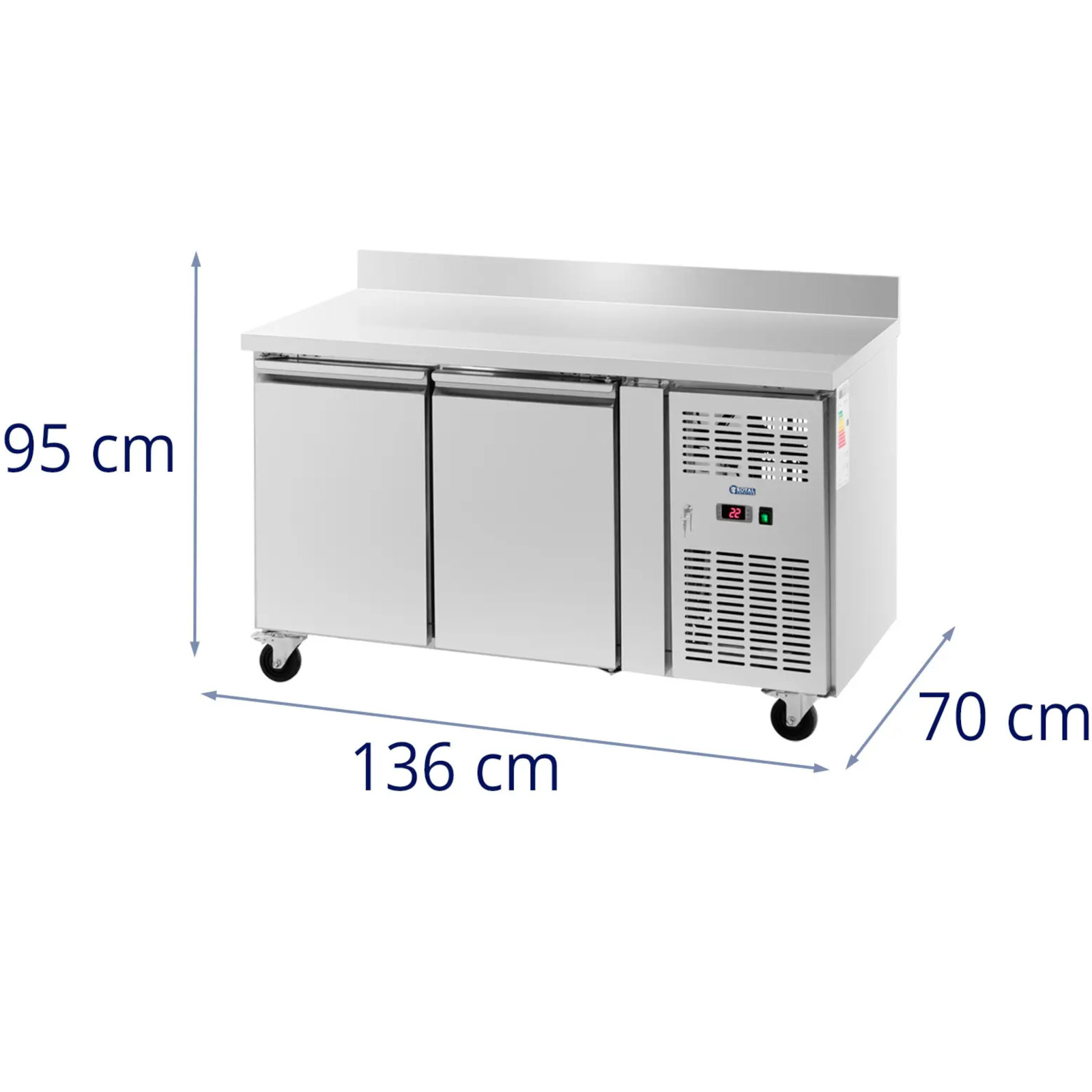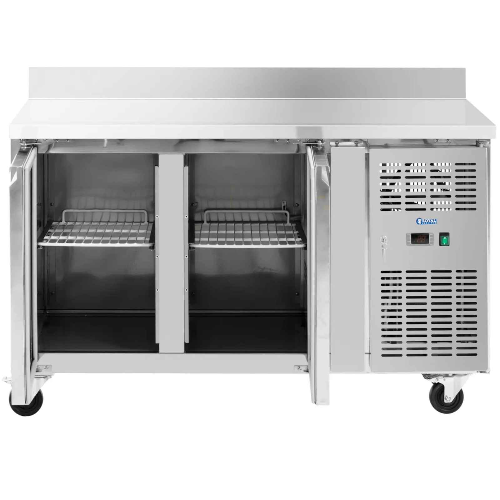 W zestawie znajdują się: stół chłodniczy, 2 półki, 4 kółka oraz 2 klucze. Wybierz stół chłodniczy Royal Catering i ciesz się efektywnością w swojej kuchni!