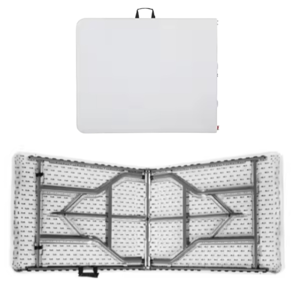 Praktyczny i solidny stół składany o wymiarach 180 x 74 cm to niezastąpione rozwiązanie podczas wszelkiego rodzaju imprez, eventów, spotkań rodzinnych, a także do użytku domowego i ogrodowego. Dzięki możliwości złożenia „na pół” oraz wbudowanej rączce do przenoszenia stół jest niezwykle mobilny i wygodny w transporcie oraz przechowywaniu.