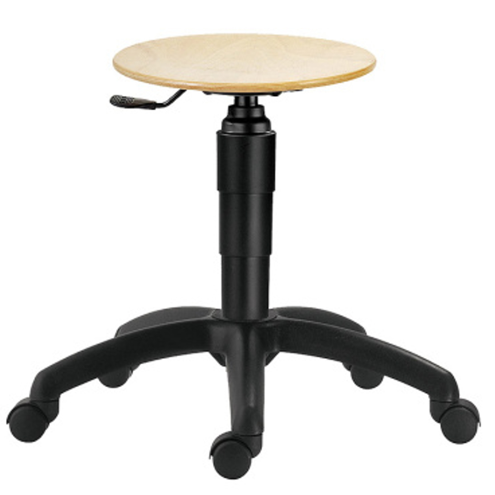 Stołek obrotowy to idealne rozwiązanie do warsztatu oraz biura. Siedzisko z odpornej sklejki zapewnia długotrwałe użytkowanie, a bezbarwny lakier dodaje mu elegancji. Dzięki gazowemu teleskopowi z plastikową osłoną, wysokość siedziska można łatwo dostosować do potrzeb użytkownika.