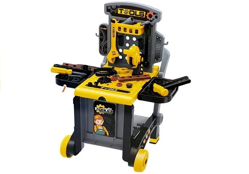 Prezentowany zestaw składa się z dużej konstrukcji stolika z bocznymi półeczkami, na której umieszczone są przeróżne narzędzia i akcesoria. Stolik można łatwo przekształcić na wózek i przewozić swoje narzędzia w różne zakamarki i pomieszczenia.