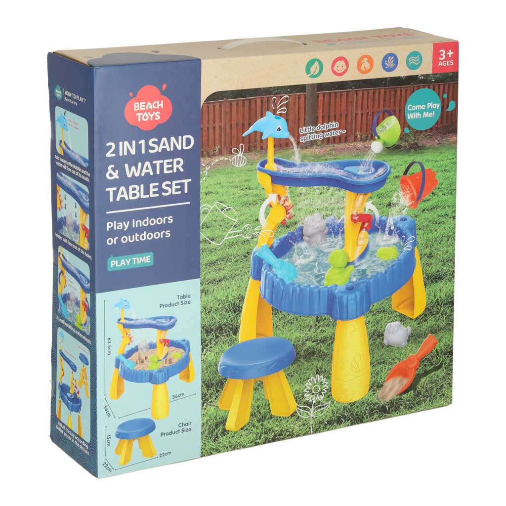 W zestawie znajdują się akcesoria takie jak łopatka, grabki, wiaderko, konewka i foremki, które umilą czas spędzany na świeżym powietrzu. Kolorowy stolik wodny to świetny pomysł na aktywne spędzanie czasu z dzieckiem.