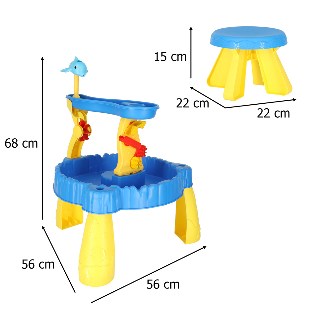Stolik wodny dla dzieci to doskonały sposób na kreatywną zabawę z piaskiem i wodą. Wyposażony w fontannę oraz tor wodny, zapewnia wiele radości zarówno w domu, jak i na plaży. Zestaw jest gotowy do użytku tuż po złożeniu.