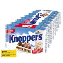 Wafle nadziewane Storck Knoppers to doskonała przekąska na każdą okazję. Zawierają pyszne nadzienie mleczne (30,2%) oraz nugatowe (29,4%), co sprawia, że są idealne zarówno w pracy, jak i podczas rodzinnych spotkań.