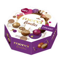 Odkryj wyjątkowy zestaw czekolad Merci Lovelies Creamy, który zaspokoi Twoje największe pragnienia smakowe. W opakowaniu o masie netto 185 g znajdziesz cztery niepowtarzalne smaki, które stworzone zostały z myślą o prawdziwych miłośnikach czekolady.