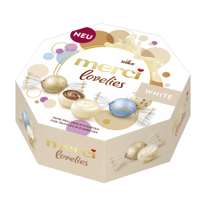 Przygotuj się na wyjątkową przyjemność i zamów Storck Merci Lovelies White już dziś! Każde opakowanie zawiera 185 g pralinek, które są doskonałym dodatkiem do każdej uroczystości.