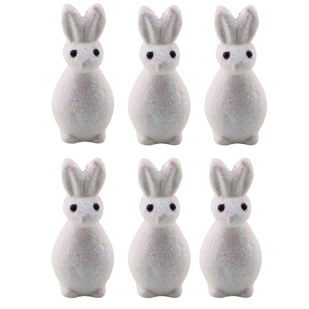Zestaw zawiera 6 zajączków pokrytych brokatem, które przyciągają wzrok dzięki swojej błyszczącej powierzchni. Zajączki występują w kolorze białym, co nadaje im elegancki wygląd, idealny do dekoracji na Wielkanoc. Ich wymiary to 10 cm x 4,5 cm. Te białe, błyszczące zajączki to świetna ozdoba na wiosenne święta lub jako element dekoracyjny do dziecięcych pokoi.