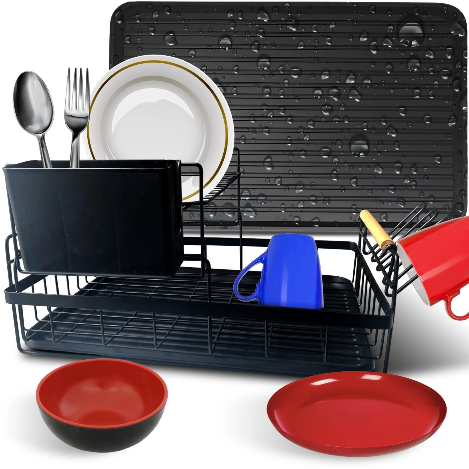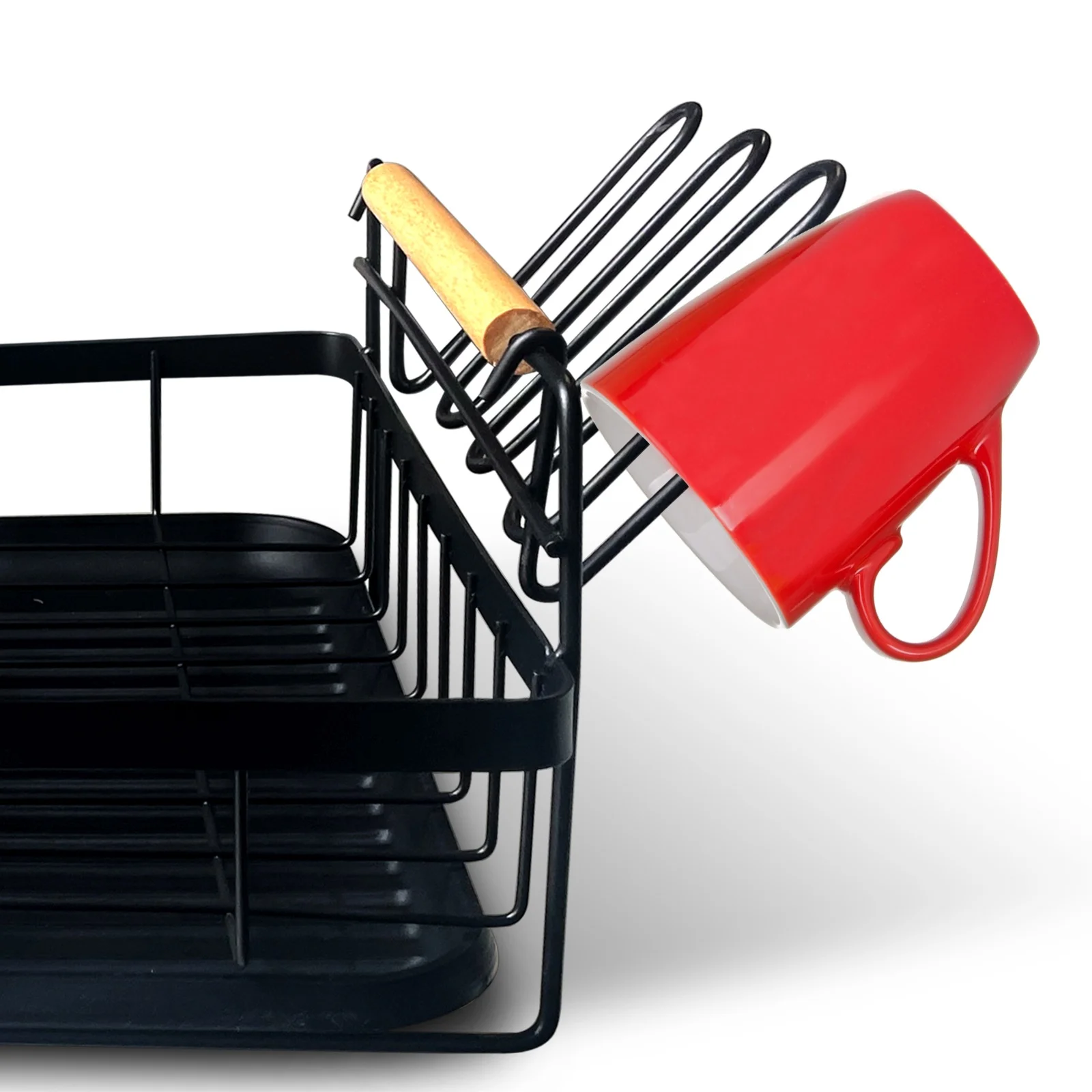 Wykonana z trwałego metalu, suszarka zapewnia stabilność oraz długotrwałe użytkowanie. Jej żebrowana struktura sprzyja szybkiemu schnięciu naczyń, a powłoka odporna na rdzę umożliwia zachowanie estetycznego wyglądu przez długi czas.