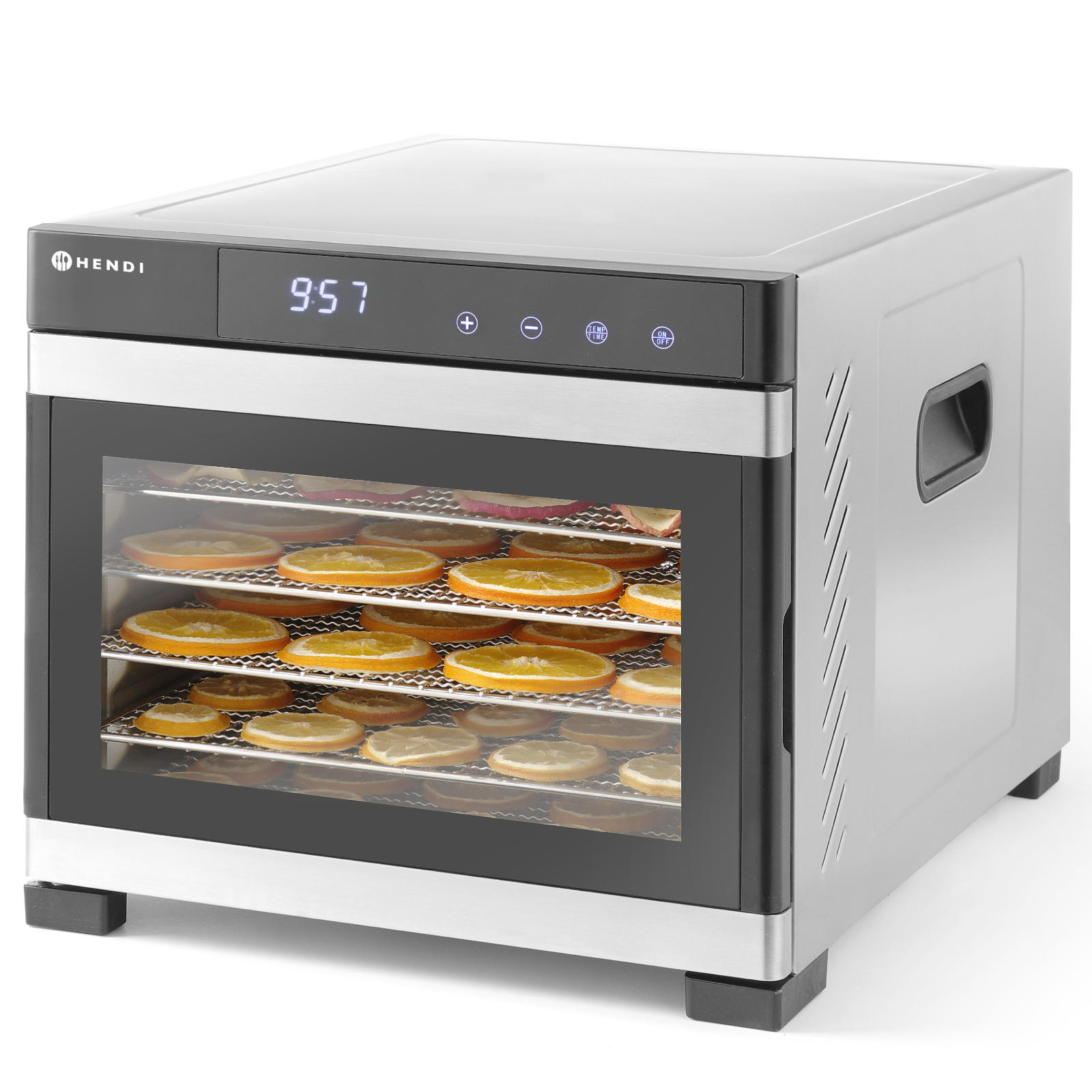 Suszarka PROFI LINE to wszechstronne urządzenie idealne do zastosowań w gastronomii. Dzięki mocy 650 W, oferuje efektywne suszenie różnych produktów. Umożliwia precyzyjne dostosowanie procesu dzięki regulacji temperatury w zakresie od 35°C do 75°C oraz timerowi do 24 godzin, co pozwala na elastyczne planowanie pracy.