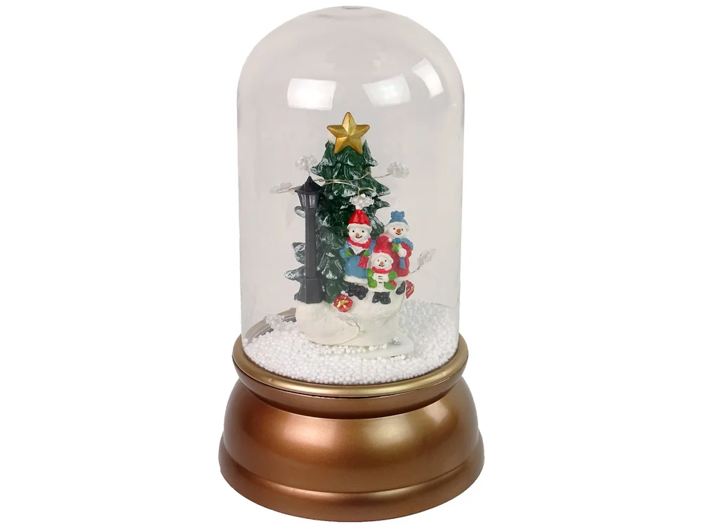 Ozdoba szklana wykonana z trwałego plastiku i szkła, bożonarodzeniowa ozdoba może być używana co roku, co czyni ją bardzo ekonomicznym wyborem i zakupem na lata. Wewnątrz szklanej ozdoby znajduje się wesoła rodzina bałwanków śpiewających przy choince przepiękne kolędy, z choinki wydobywa się sztuczny śnieg. Możesz przenieść się w świat pełne śniegu i symboli świąt Bożego Narodzenia. Pompa znajdująca się wewnątrz transportuje śnieg z podstawy i rozpyla go od góry, dając wrażenie padającego śniegu.