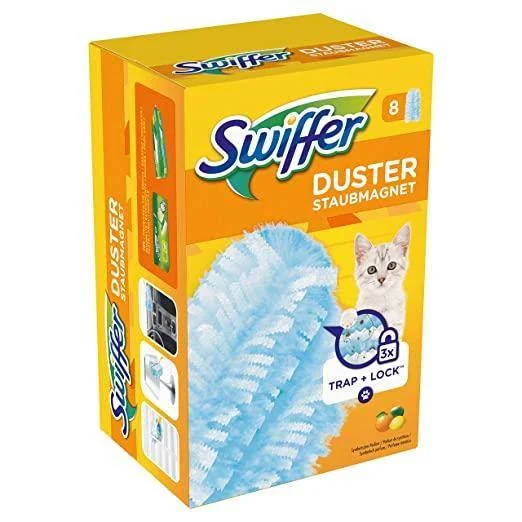 W opakowaniu znajduje się 8 wkładów, które pasują do miotełek Swiffer. Dzięki nim dotrzesz do trudno dostępnych miejsc, gdzie kurz lubi się gromadzić. Wybierz Swiffer Duster i ciesz się czystością w swoim domu!